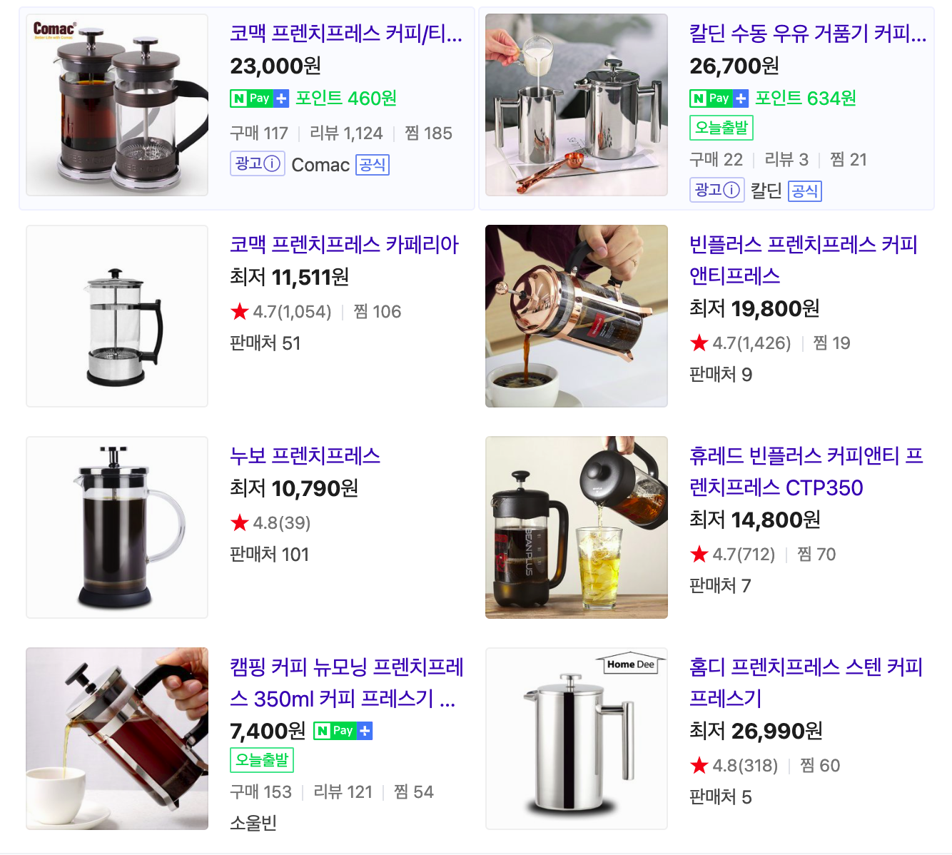 그렇다면 어떤 프렌치 프레스 제품을 고르면 좋을까? 가격에 따른 차이가 있을까?