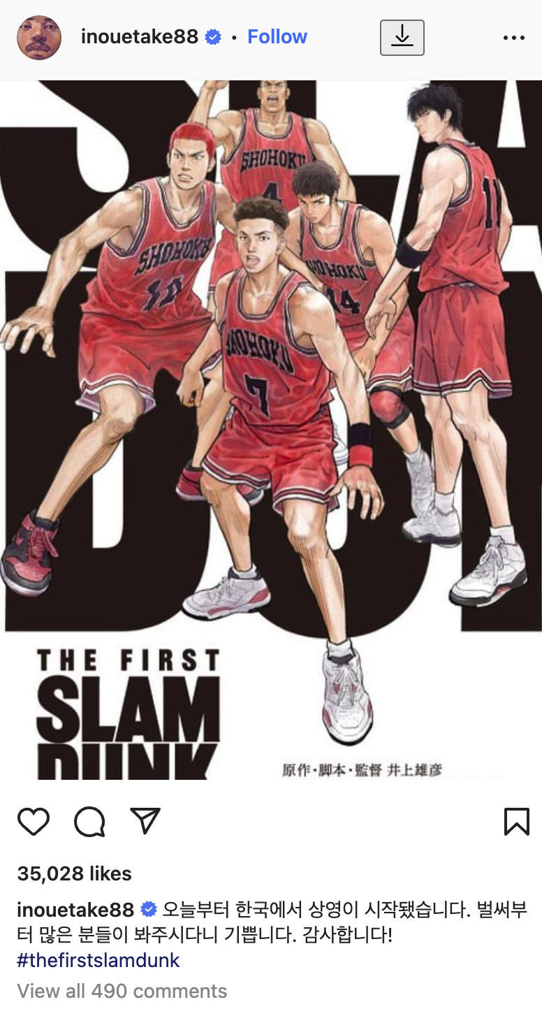 전설의 만화 슬램덩크의 작가 다케히코 이노우에가 직접 연출한 더 퍼스트 슬램덩크가 꽤나 큰 인기몰이를 하고 있다. 관객층이 얕은 애니메이션임에도 불구하고 3-40대 남성들의 향수를 자극하면서 개봉 7일 만에 50만 관객을 돌파하였다.