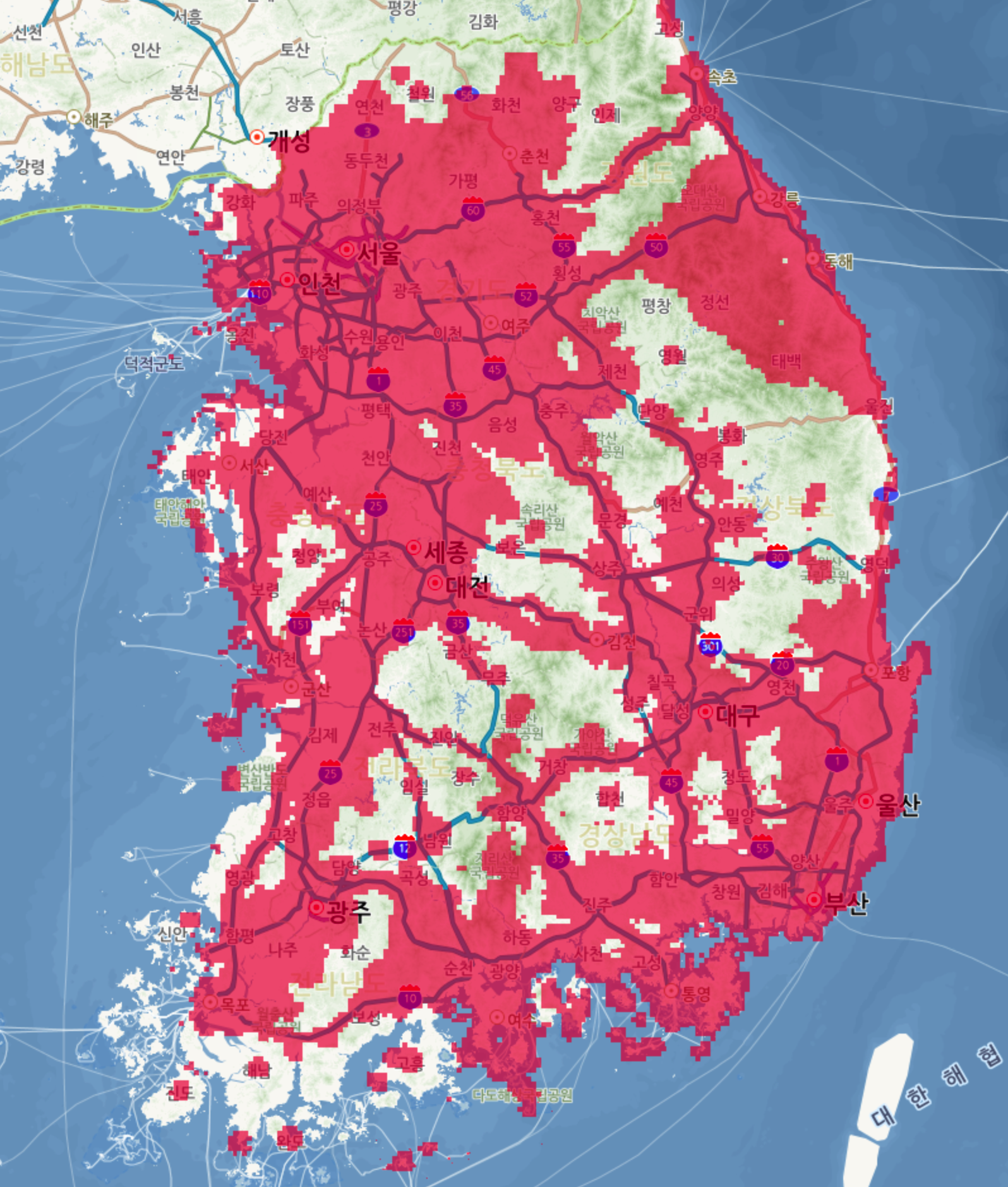 스타링크의 가장 큰 목표는 '인터넷이 없는 지역'을 커버하는 것이다. 서비스의 성격상 서울과 같은 대도시에서는 인터넷의 속도나 가격면에서 큰 이점을 내기는 어렵다. 다만 아래와 같이 5G+LTE 속도를 내지 못하는 산간지역이나, 도서지역에서의 통신에 이점이 있을 것으로 보인다.