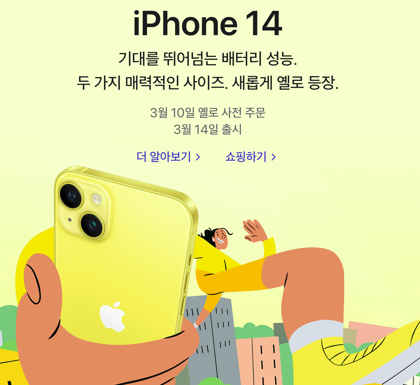 옐로 모델 사전주문 시작 - 2023년 3월 10일 22시 - 애플코리아 사이트 바로가기