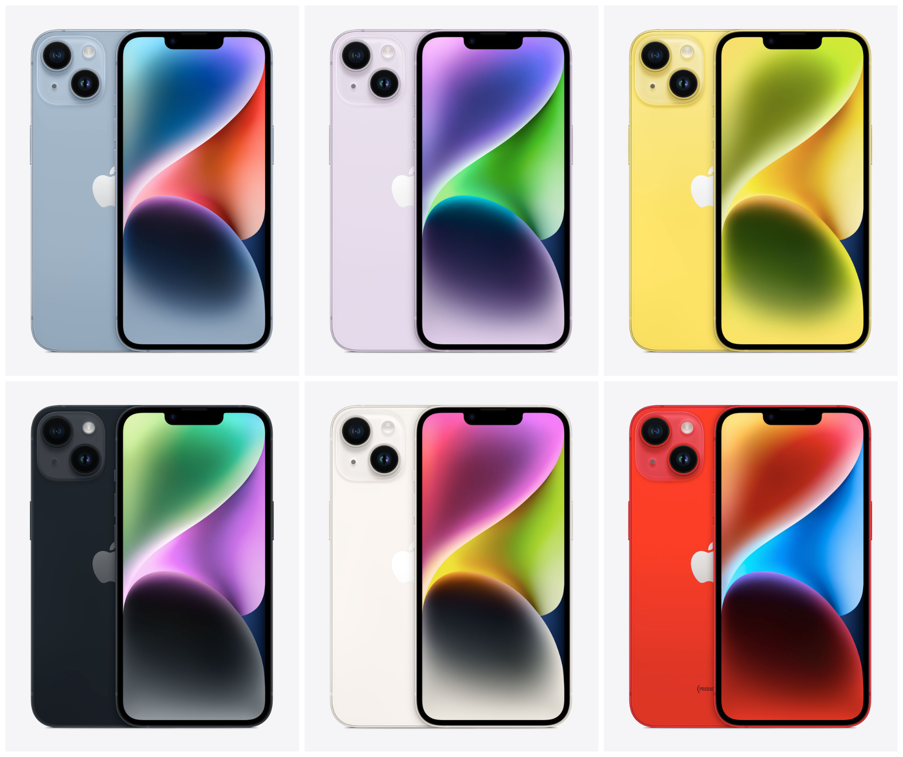 컬러를 잘 사용하기로 유명한 애플이 2023년 봄을 맞이하여 옐로 모델을 출시하였다. 이로 인해 아이폰의 컬러 라인업은 총 여섯가지가 되었다.