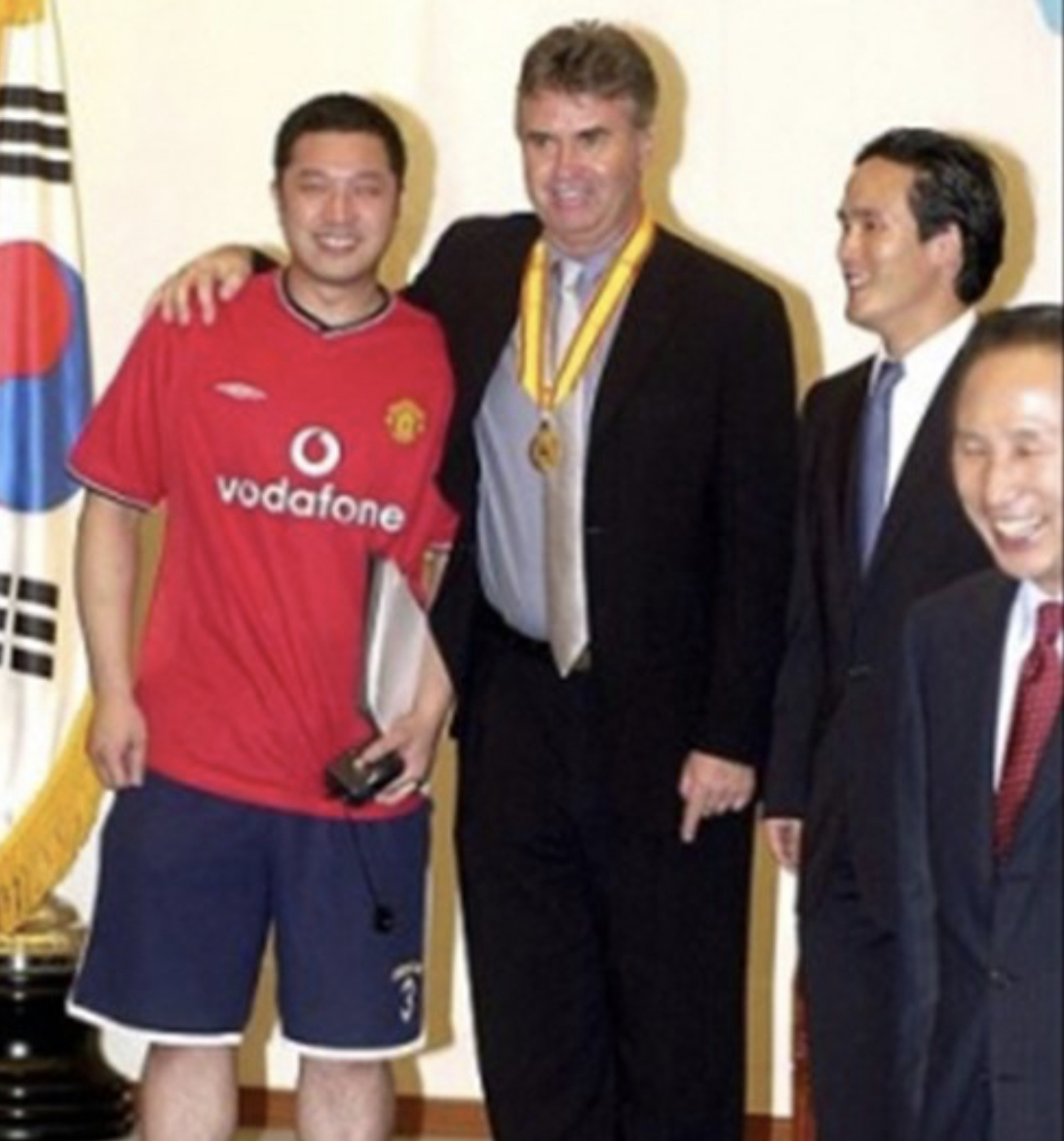 이명박이 서울 시장으로 근무할 당시 2002 월드컵 열풍으로 당시 히딩크 감독에게 명예시민증을 수여하던 당시, 무개념 사진으로 유명한 아래 사진을 찍으면서 인터넷을 도배했었다.