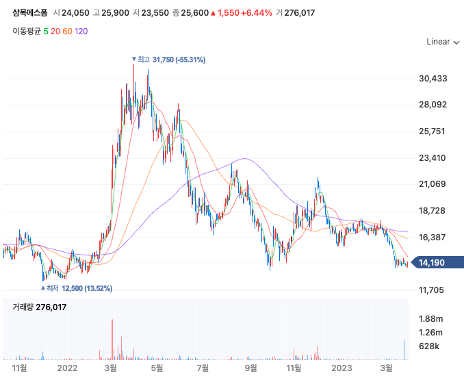 하지만 여러 요인으로 만들어진 최근 가격을 이탈하기 시작하면 회사 입장에서는 상장폐지는 먼 길이 되어버릴 수 있다. 즉, 어쩌면 지금이 삼목에스폼으로서는 상장폐지 적기라는 의미다. 곧 다가올 주주총회 소식을 보면서 삼목에스폼의 행보를 지켜봐야겠다.