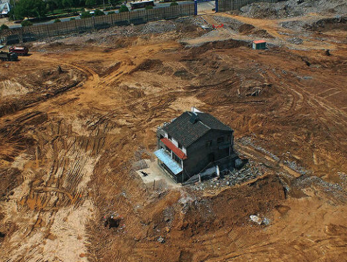 어떤 지역의 부동산 개발을 할 때, 주변 지역을 모두 매입하여 개발을 시작하는 것이 보통이다. 그래서 기존의 집주인들은 적당한 가격에 호응하여 매각하지만, 끝까지 남아서 버티고서 더 비싼 보상금을 받는 경우를 알 박기라고 표현한다. 개발사들도 한복판에 매입하지 못한 부동산이 남아버릴 경우, 프로젝트가 어그러질 수 있어서 울며 겨자 먹기로 매입하게 된다. 물론 알 박기가 실패하는 경우도 많다.