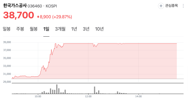 대표적으로 한국가스공사가 상한가를 기록하였다.