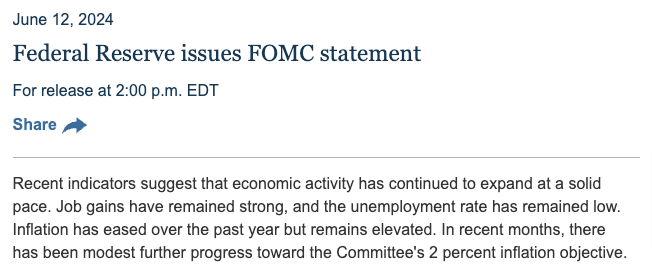 2024년 6월 FOMC 성명문 전문