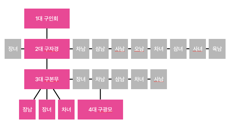 기업 총수의 가계도: LG그룹의 직계 4대 구인회, 구자경, 구본무, 구광모