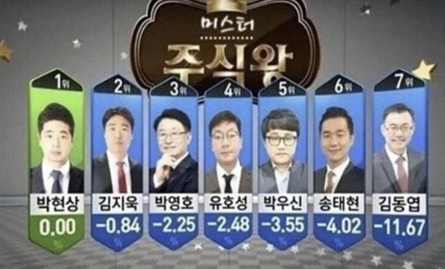 많은 주식 전문가들이 세상에 나와 대결을 하고 있는 지금, 그들의 승률은 어떨까요? 아래 사진은 코로나 당시 열린 주식대회 첫날의 내용입니다. 물론 일시적인 상태였지만, 전문가들도 별 수 없다는 말을 할 때 이 사진이 돌곤 합니다.