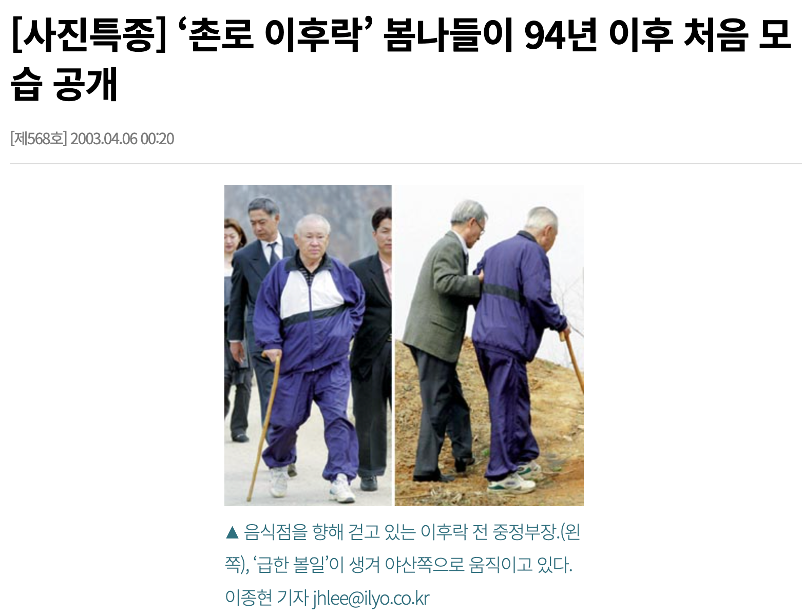 일요신문- '촌로 이후락' 봄나들이 94년 이후 처음 모습 공개